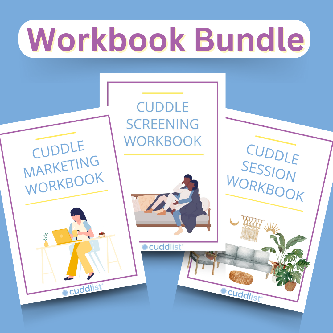 Full color PDF downloadable workbooks to grow your cuddle therapy practice.